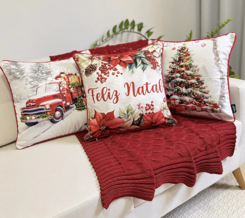 - > Kit 3 capas de Almofadas Natalina em Veludo com Cordone Vermelho